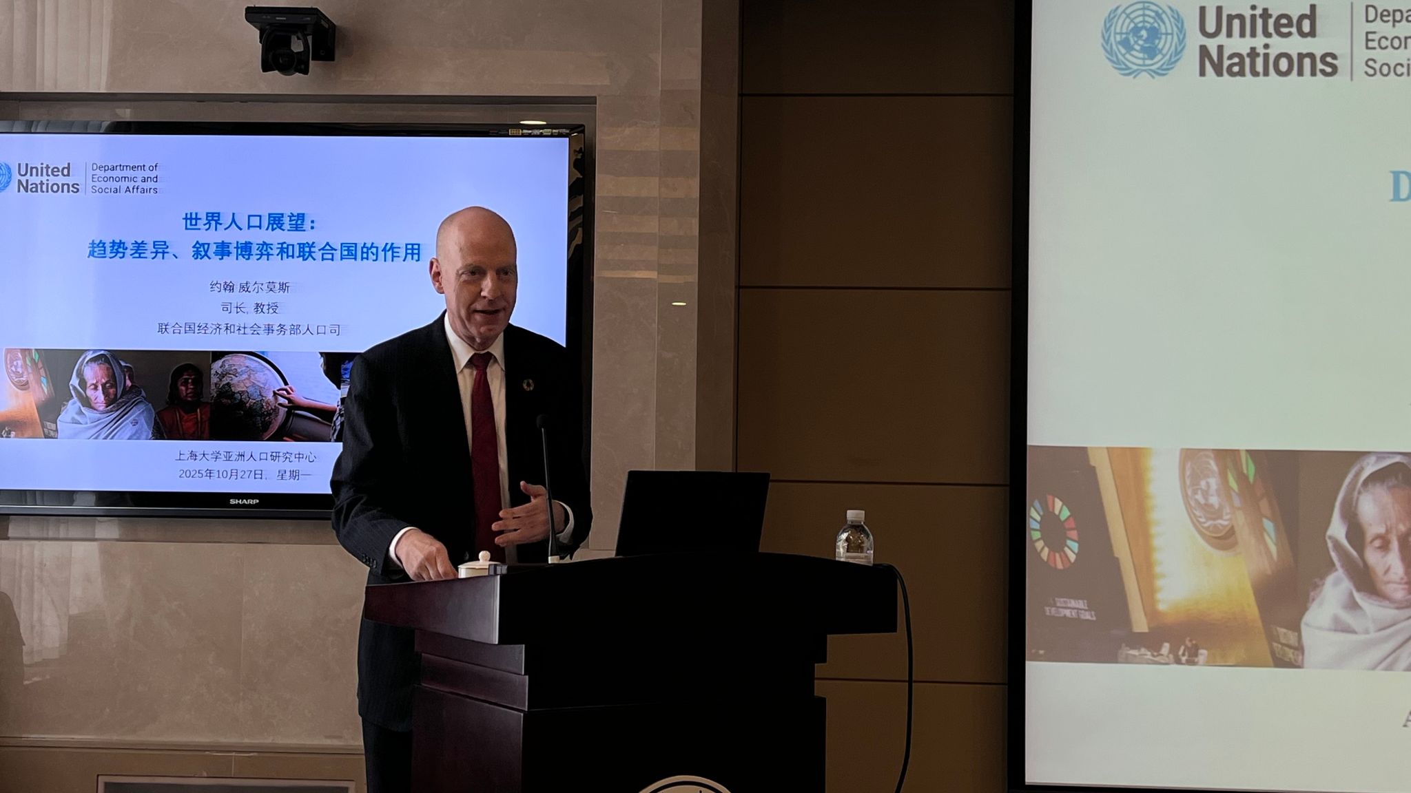 2025年10月27日,联合国人口司司长、原美国加州大学伯克利分校人口学教授John Wilmoth在上海大学发表了题为“The Future of World Population:Divergent trends, competing narratives and the role of the United Nations”(“世界人口展望:趋势差异、叙事博弈和联合国的作用”)的主题演讲。本次活动由上海大学社会学院人口学研究所暨亚洲人口研究中心主办,吸引了众多师生和研究人员的积极参与。