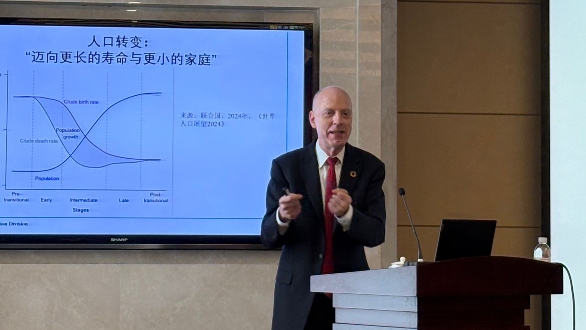 在全球趋势方面,Wilmoth司长指出,世界人口正普遍经历着向更长寿命和更小家庭规模的转变。然而,由于各国人口转变的时间进程存在差异,加之转型后的迁移和生育模式不同,使得全球人口发展趋势呈现出显著分化。通过详实的数据展示,他说明了预期寿命延长和年龄结构上移等趋势,并指出全球人口讨论的焦点已从过去的"人口爆炸"危机叙事转向当前对"人口老龄化和衰退"的关注。在对低生育率问题的分析中,Wilmoth司长从宏观和微观层面进行了深入探讨。通过人口预测模型,他论证了即使在持续低生育率情境下,人口下降仍是一个相对缓慢的过程。